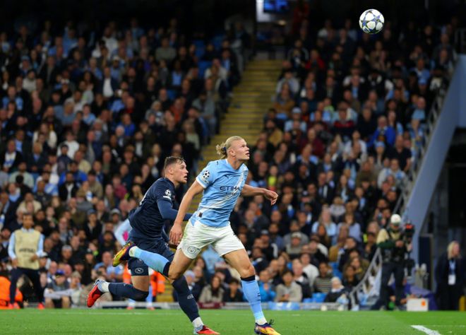 下半场易边再战。第51分钟,福登在禁区左侧低射远角,皮球稍稍偏出。第56分钟,场上的僵局终于打破了!福登送出精妙挑传,哈兰德前插,头球攻门,皮球划出一道漂亮的弧线钻入球门!哈兰德连场破门。曼城取得领先!随后,罗德里被换下,尼科-冈萨雷斯替补上场。