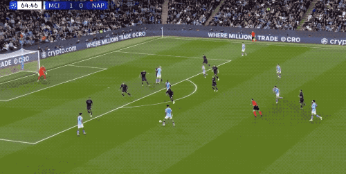 第56分钟,接到罗德里的传球,福登转身搓传一气呵成,哈兰德巧妙顶出了抛物线,越过米林科维奇的头顶。