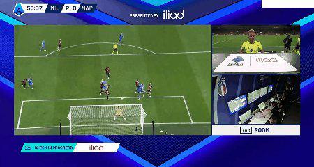 60’ 麦克托米奈头球攻门,迈尼昂将球扑出。迪洛伦佐上前准备补射,埃斯图皮尼安将其放倒,主裁判罚点球,观看录像后向埃斯图皮尼安出示红牌。德布劳内主罚点球命中,那不勒斯扳回1球。