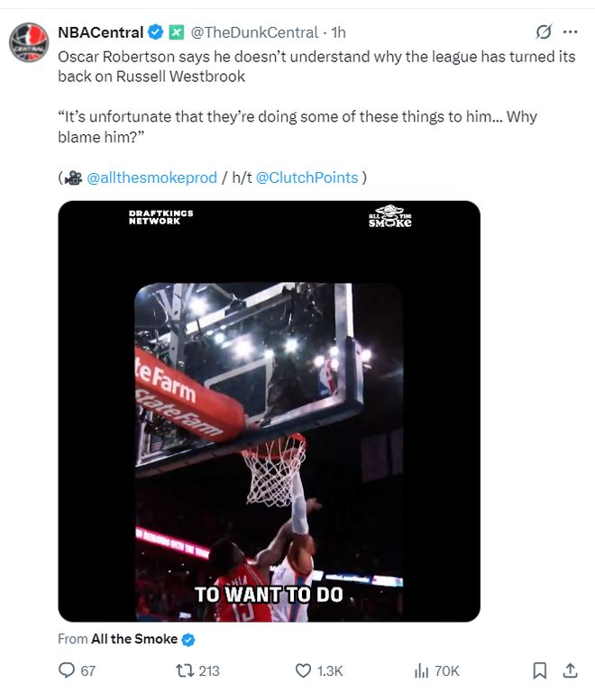 NBA名宿奥斯卡-罗伯特森在参与一档节目时也力挺威少应该继续留在NBA打球,大O表示:不明白为什么NBA没有球队想要签下威少,很遗憾联盟对他做出这样的事,如此出色的他为何被冷遇,为何要用一些莫须有的问题来责怪他呢?相关资讯