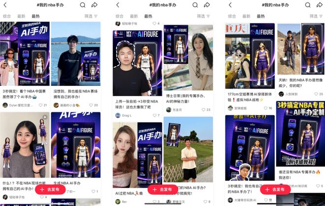 在我回酒店的路上,我发现朋友圈和小红书开始被各种「脑洞大开」的 AI 手办刷屏了。各种「NBA 手办生成」、「我变成 Q 版球星啦」的帖子铺天盖地,网友们也是玩得不亦乐乎。 AI 手办就像一种新的社交货币,让每个球迷都能在自己的主场 C 位出道。