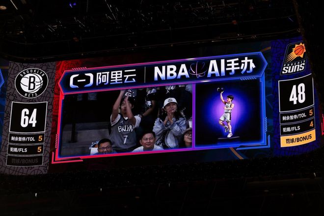 球场大屏还会通过现场摄像头捕捉身穿球衣的球迷形象,随后由阿里云 AI 生成专属「球迷潮玩」——穿着主队球衣,配合动作,以「球星收藏手办」的形式展现在屏幕上,并与真人同框对比。这是 NBA 赛场上呈现的的首个 AI-CAM Show,是将赛事观看与球迷互动的一次深度重塑。 基于阿里云强大的人工智能平台 PAI 与通义大模型算法,NBA 团队真正做到了让球迷成为主角表达心中热爱,让每个人都有机会拥有此生难忘的梦幻瞬间。