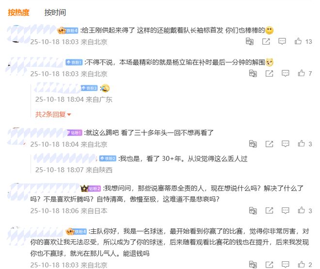 有球迷写道:“给王刚供起来得了,这样的还能戴着队长袖标首发,你们也棒棒的!”