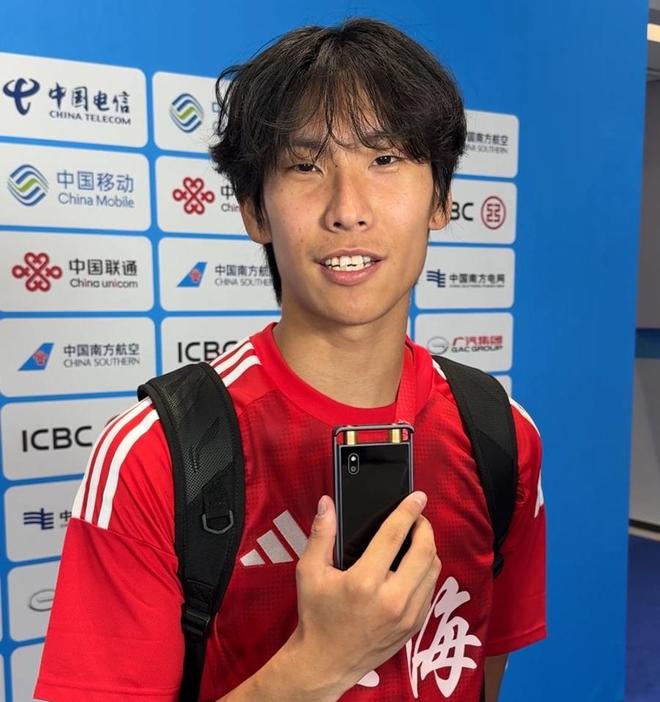 本场比赛打入制胜进球的李新翔赛后接受采访(金亦辰摄)